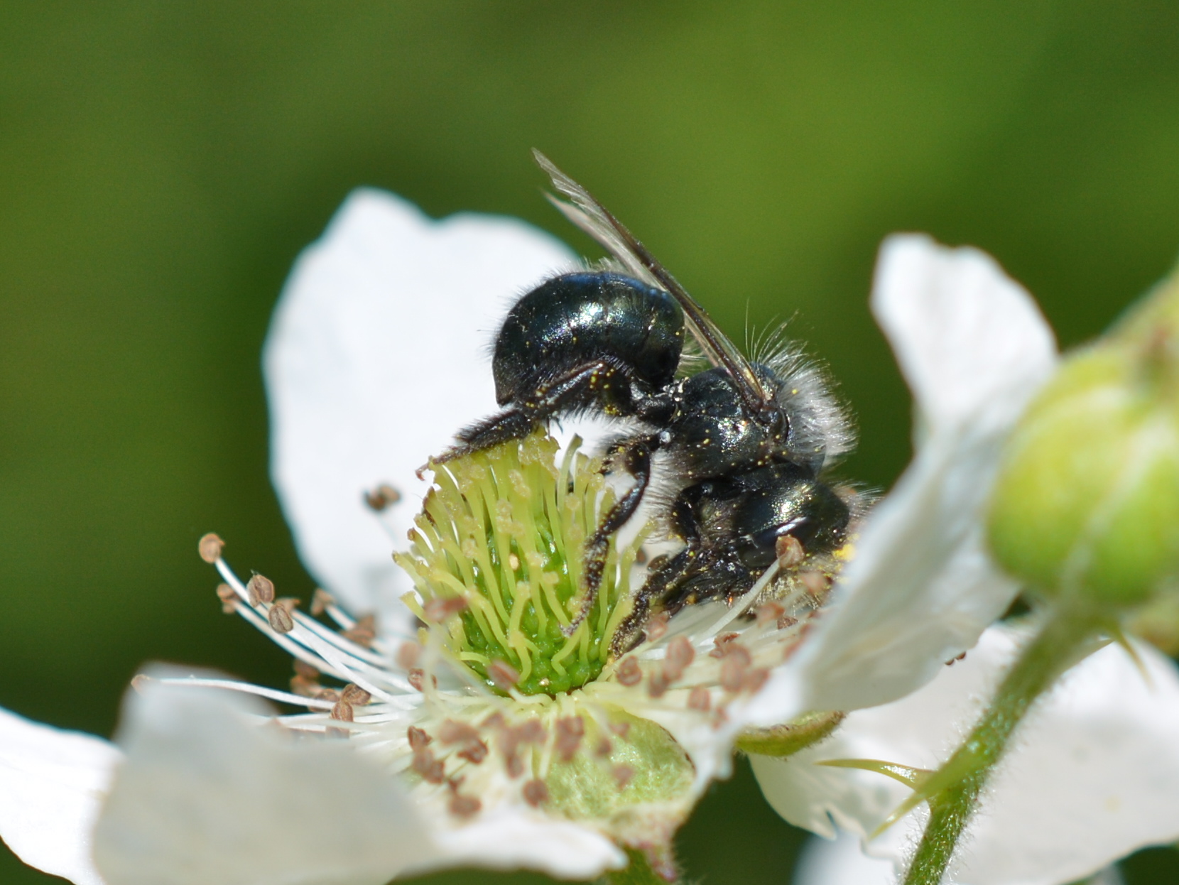 The idyllic farm conjures up images of chickens scratching around the farmyard, cows grazing in green pastures, and gardens producing a bountiful harvest. One third of our food supply is achieved through the endless effort of pollinators, in particular bees. The economic value of insect-pollinated crops in the United States is estimated to be $20 billion dollars in 2000, with native insects responsible for a least $3 billion dollars in crops. Honeybees are credited with the majority of the work, but the best and most effective pollinators are our native pollen bees and other native pollinators. There are nearly 4,000 native bees in North America with over 400 native bees found in New York. This is a snap shot of a typical garden found in the Hudson Valley and the small floral visitors busy at work gathering pollen and drinking nectar.