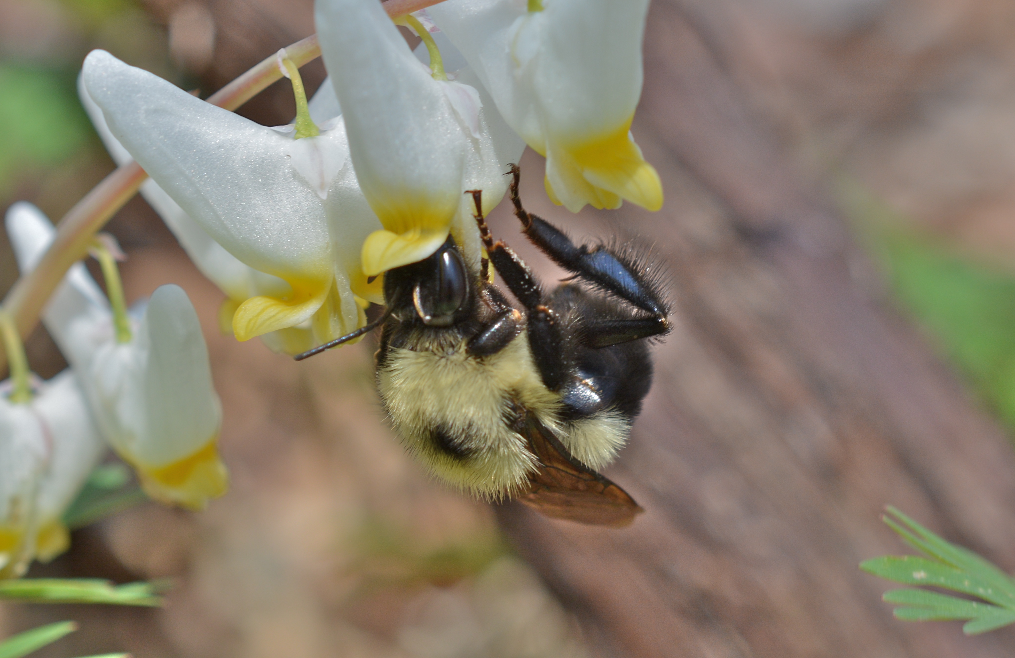 Bees are attracted to a variety of flower sizes and shapes. Many flowers that attract bees are radially symmetric, shallow and bowl shaped, that make for a good landing platform. A few popular favorites include: coneflower (Echinacea spp.), black-eyed Susan (rudbekia spp.), sunflowers and asters. Bees are attracted to the many small flowers in the disc like flower head. Bees are also attracted to non-radial symmetric flowers such as Dutchman’s Breeches, a spring ephemeral with its long spurs, are perfectly suited for the queen bumblebee whose long tongue is able to reach the deeply hidden nectar. The bottle gentian has closed petals that a bumblebee must pry open to gain access to the pollen and nectar. The tubular flowers of smooth beard-tongue attract many spring bees including the digger bees that line their brood cells with oil secreted by the plant. Native bees are also suited to “buzz pollinate” the bell like flowers of blueberries or the flowers of tomatoes where the pollen must literally be shaken out.