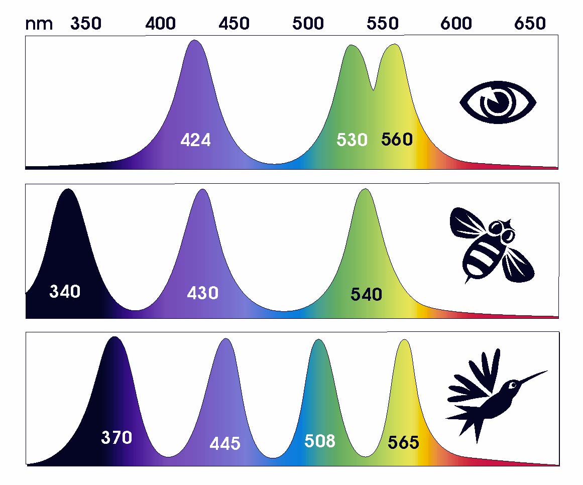 Bees live in a reality absent of red and are most attracted to bright white, blue, yellow, and ultraviolet coloration. With the sacrifice of red comes the gift of low ultraviolet. Present on bee pollinated flowers, low ultraviolet “nectar guides” act much like airport runway lights that guide the pilot to a safe landing, the ultraviolet markers guide the bee directly to where the flowers nectar reserves. Nectar is a reward for any pollinator who visits the flower and ensures that pollen is transported to other flowers. Ironically, bees not only love nectar but also gather protein rich pollen as a food they feed their larvae. Red flowers are alluring to butterflies and/or hummingbirds with the nectar deeply hidden in long narrow tubes reachable with long tongues or proboscises.