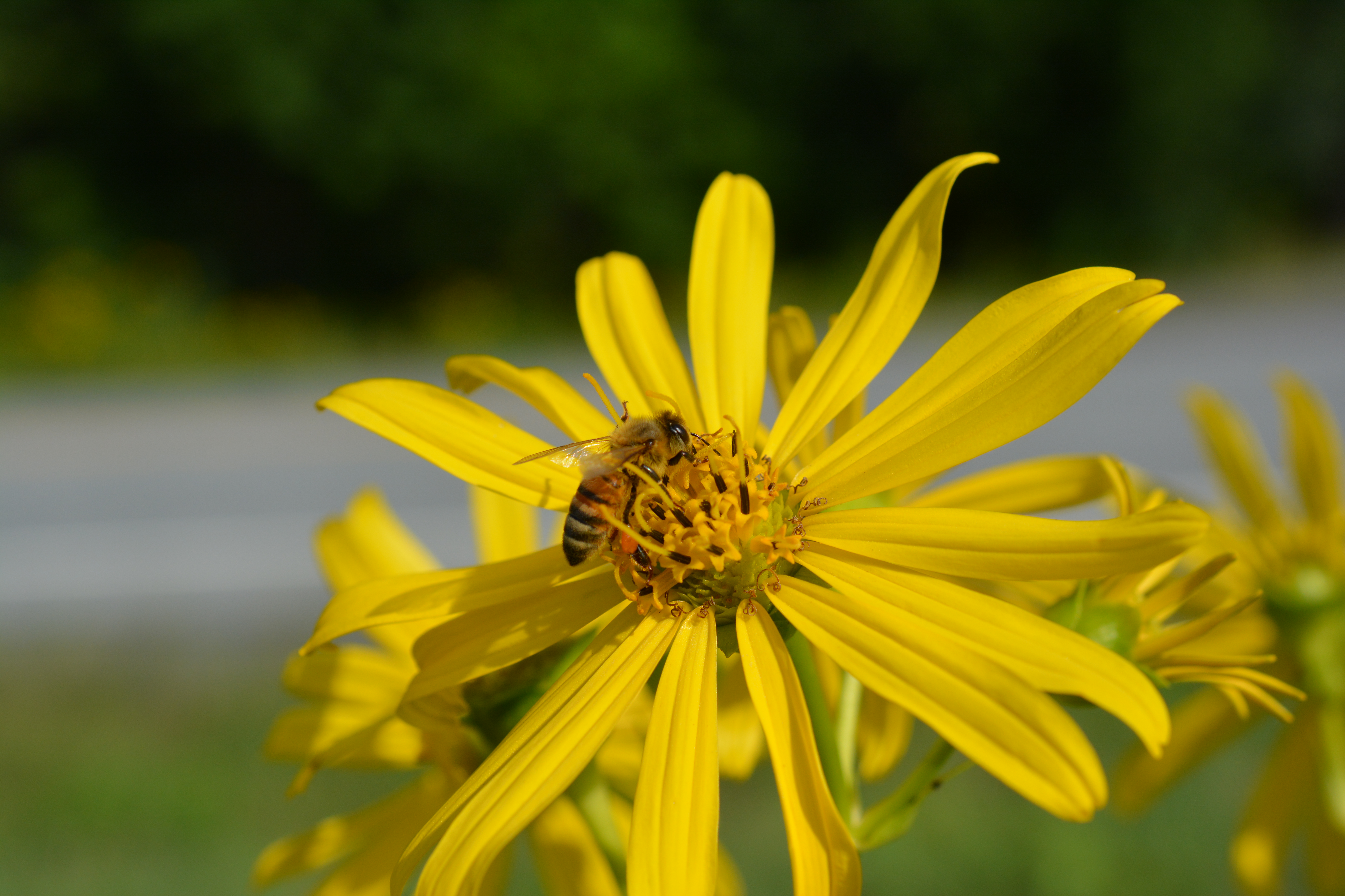 The aster family is often called the daisy or sunflower family and flowers in this group consist of a disk of small flowers surrounded by ray flowers. The overall look is one flower head surrounded by petals. Look closer at the disk and you will see there are many tiny flowers clustered together. Bees and other pollinators love these flowers. Many flowers in this group bloom in the late summer and early fall.