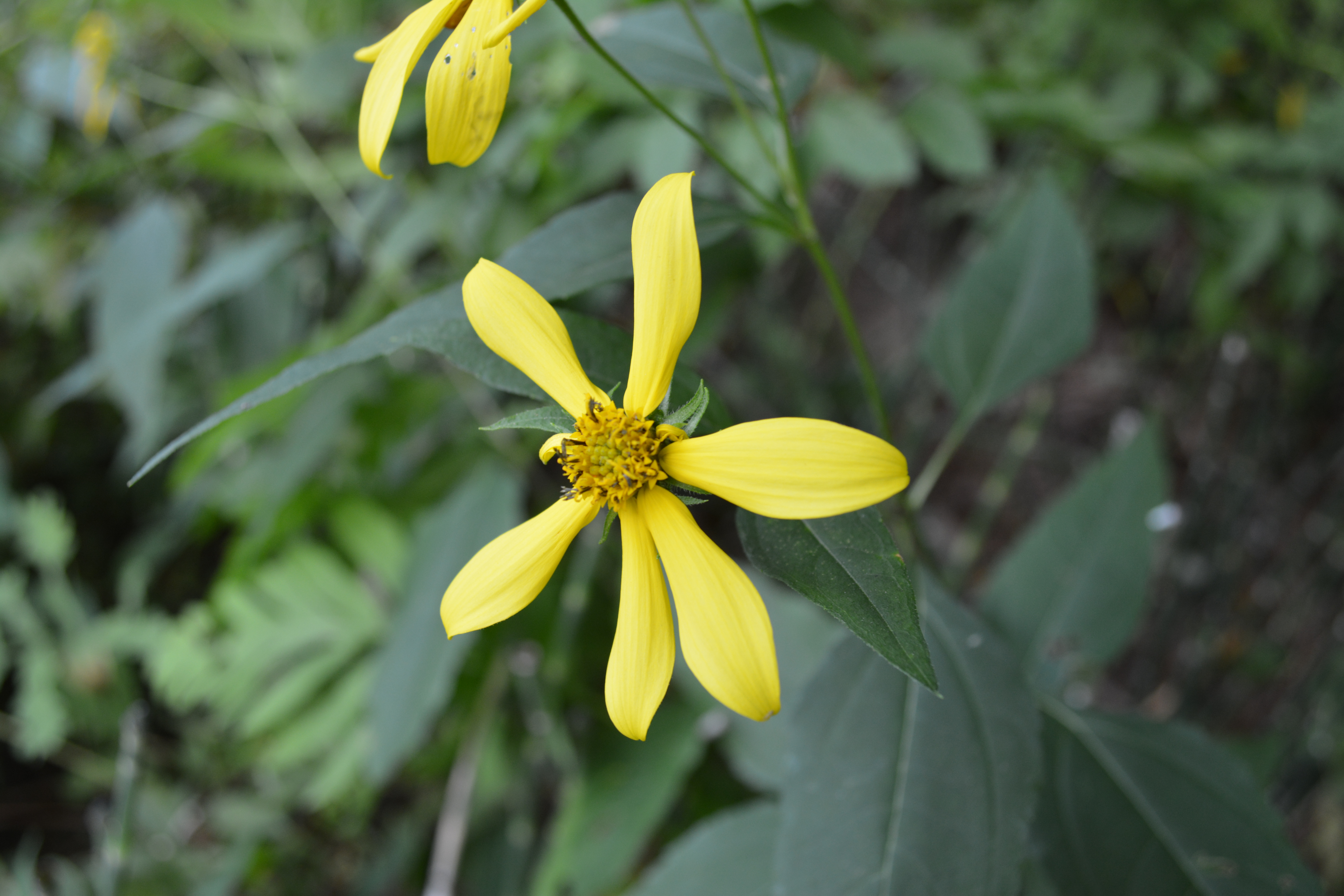 The Cup Plant is so named for the large leaves that fuse together around the thick square stem forming a “cup”. This is one of the defining characteristics that separate it from woodland sunflowers (Helianthus spp.) and false sunflowers (Heliopsis spp.) other similar plants that grow along the river.