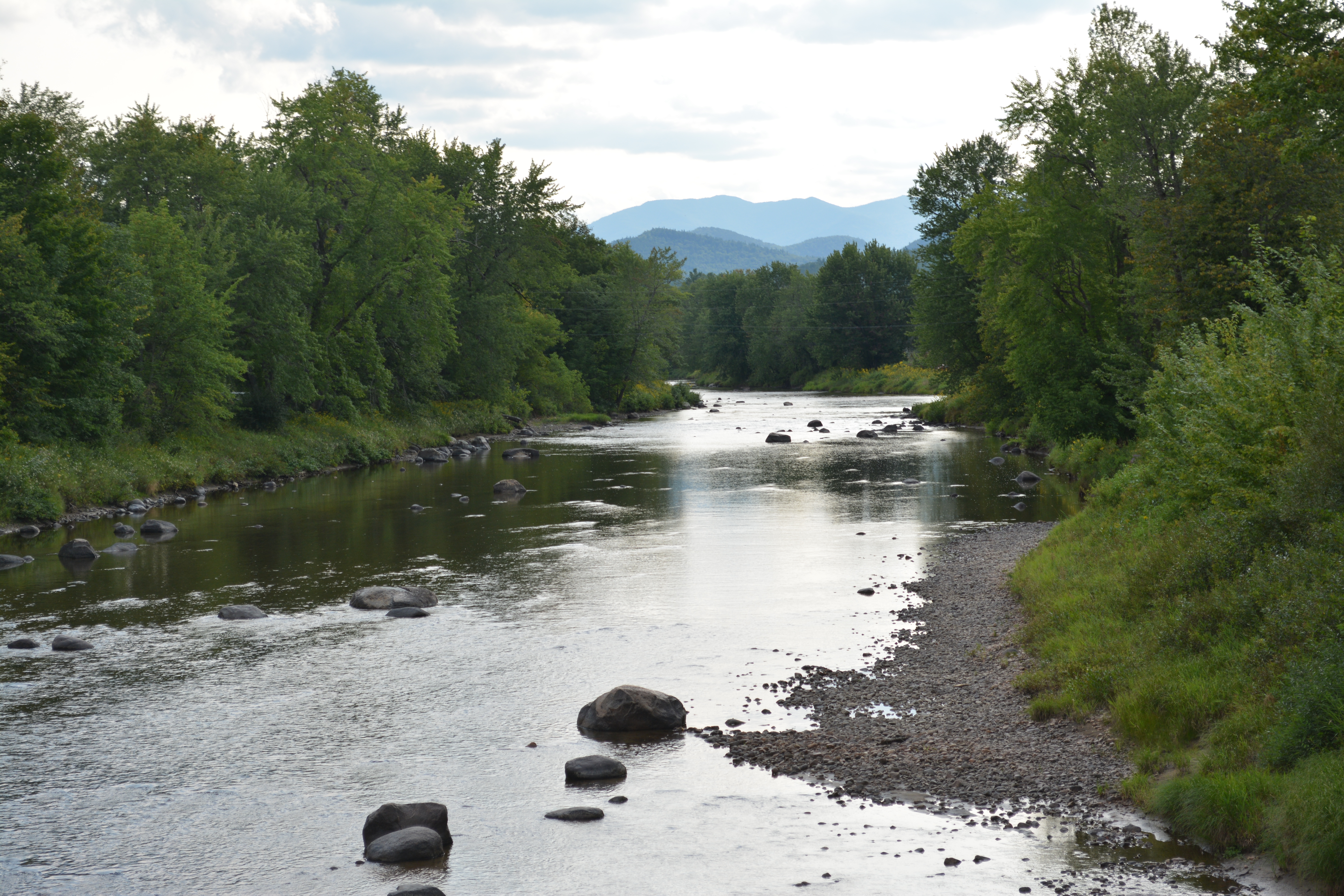 In recent years, a new flower has appeared growing along the east branch of the Ausable River in the Adirondacks. It is a tall (8 to 10’) and beautiful member of the aster family and bees love it! The flower is known as Cup Plant or Indian Cup (Silphium perfoliatum) and is native to North America but not the Northeast. This plant originates in the tall grass prairie ecosystem of the mid-west where it coexists among other natives of that region. It also thrives along the fertile floodplains along the Ausable River where in the absence of its prairie cohorts it’s population is exploding and has gained the reputation of being an invasive plant as it chokes out the less competitive native plants. Its origins in the Adirondacks most likely date back twenty years where it became an escapee from a Keene garden, ensuing floods have spread it along the down stream river banks.