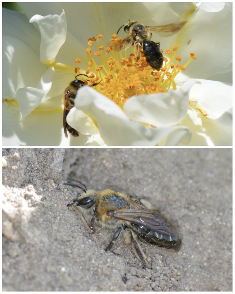 Unlike yellow jackets, which are wasps, solitary bees like these are non-aggressive and live independently. Each female builds her own nest, laying the foundation for the next generation without the need for a queen or hive.