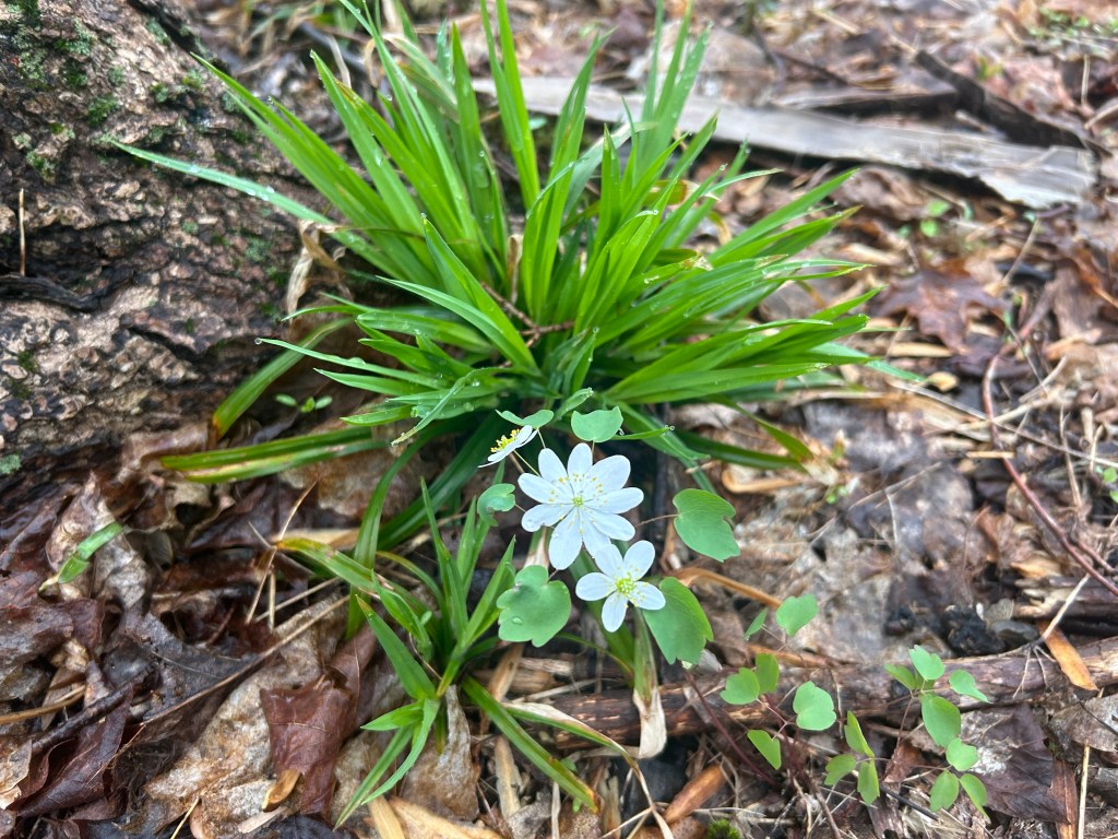 Two common wildflowers you’ll find this time of year are Wood Anemone (Anemone quinquefolia) and Rue Anemone(Thalictrum thalictroides). They’re often confused for one another, and both carry the name “anemone”—a word of Greek origin that means “breathe” or “live.” Fitting, for flowers that mark the forest’s first breath of spring.