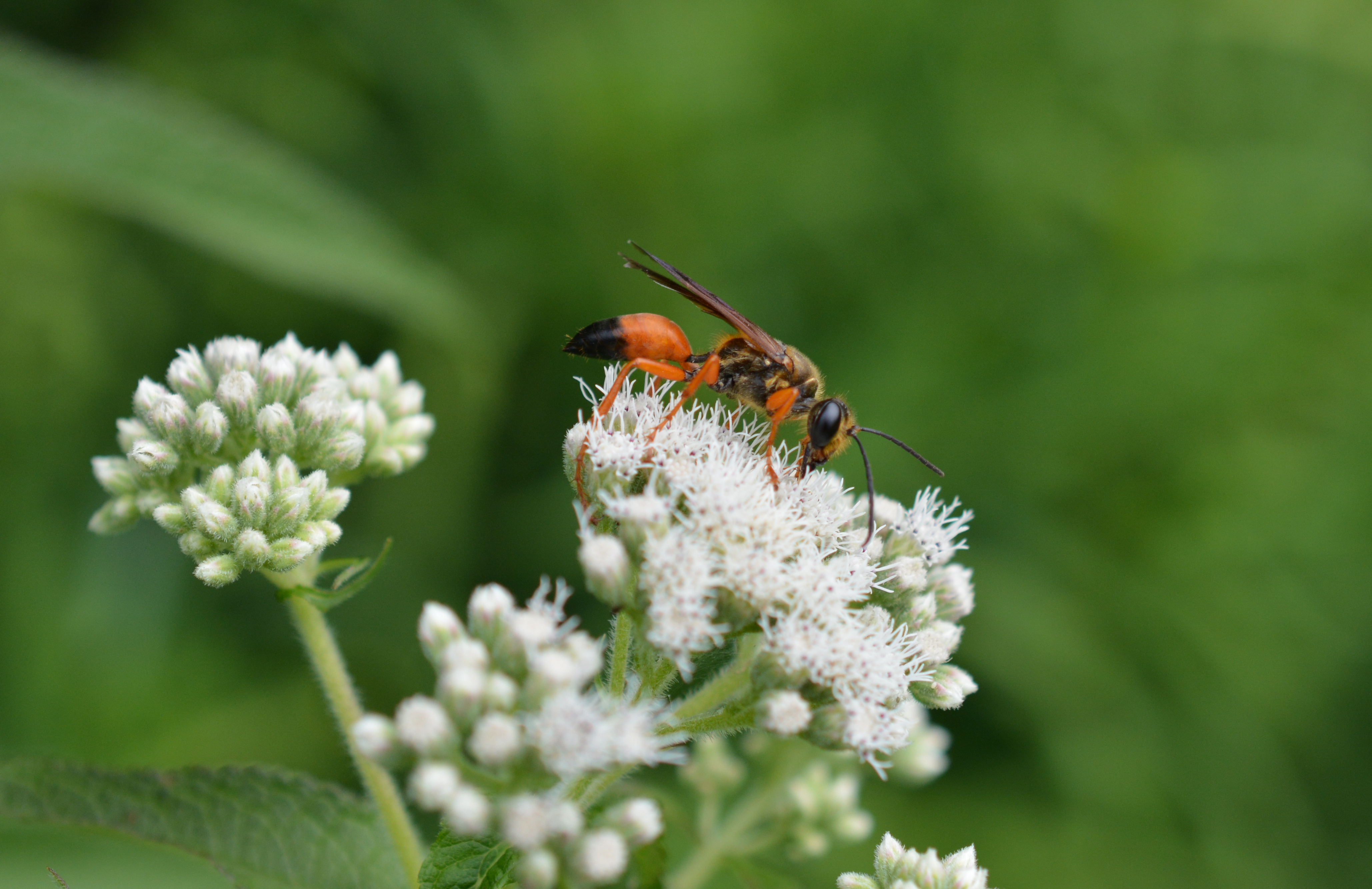 Wasps are often found alongside bees, seeking nectar at flowers. These predatory insects lacking the fuzzy hairs of bees, serve some limited value as pollinators. As you come to appreciate the bees in your garden, it is equally important to recognize this diverse group of insects that can be found working alongside one another to create a balanced ecosystem within our gardens, parks and forests.